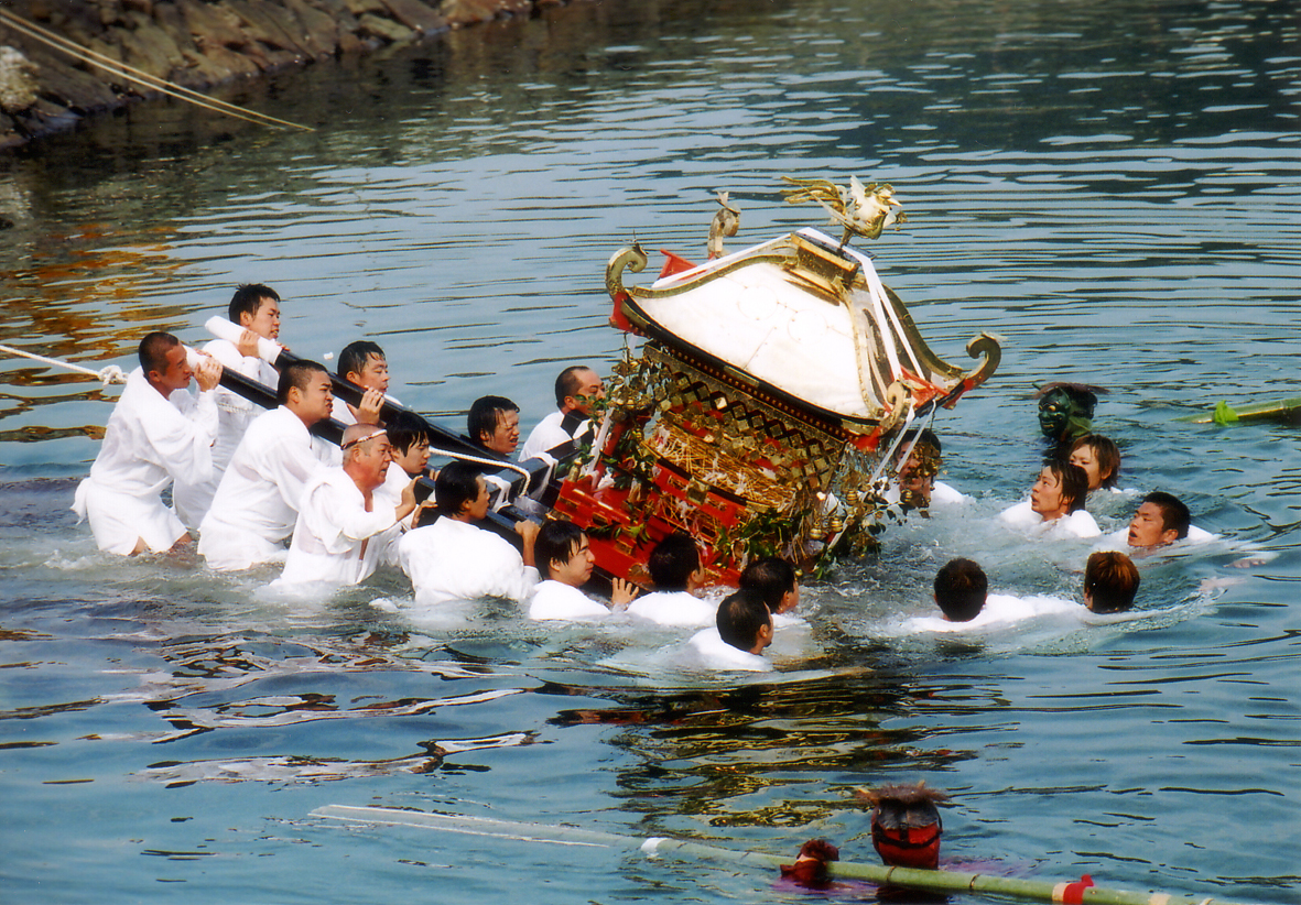 9月16日(日)本祭り 午前~御輿 大ねり、小ねり、鬼など 15:00頃~海に入る