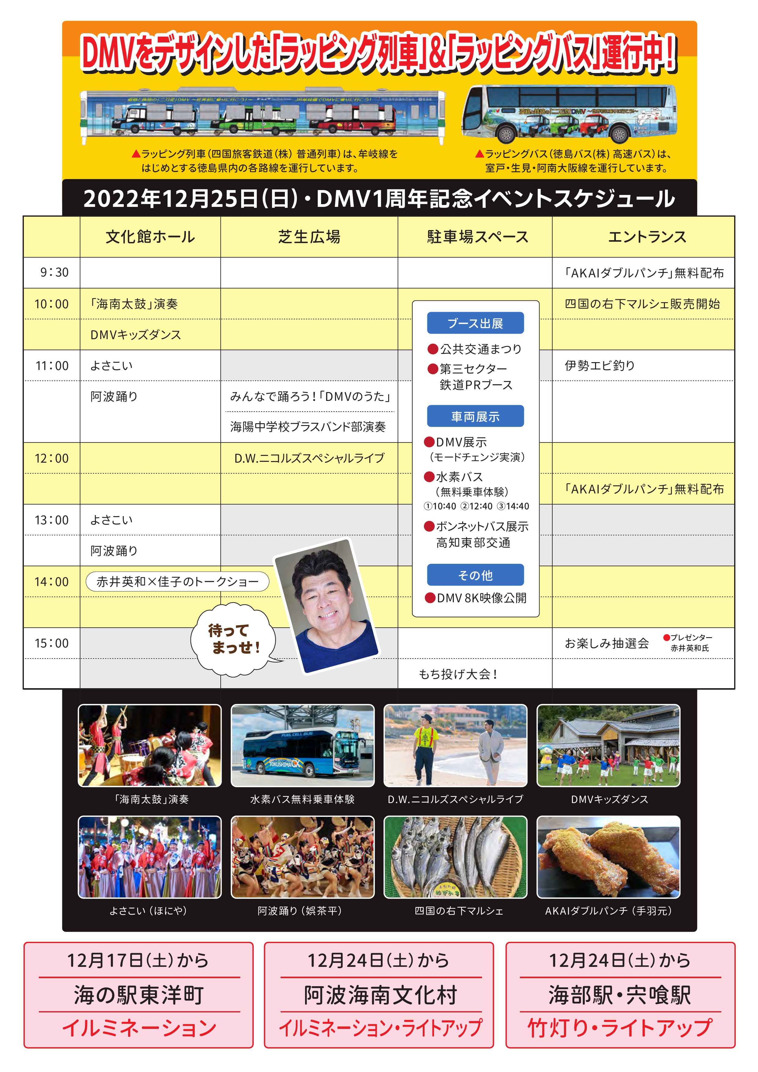 12月25日は、阿波海南文化村で、公共交通まつり、四国の右下マルシェ、赤井英和さんトークショーなどが行われます。