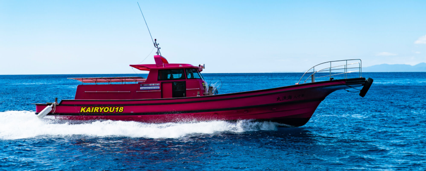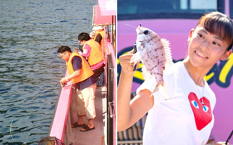 観光漁船「海漁丸」を使って、無人島・牟岐大島でクルージング、釣り、バーベキュー、SUPやシュノーケリングなど様々なアクティビティや自然を満喫できるプランを提供。女性やファミリー向けに船内には水洗トイレも完備している。
